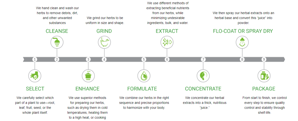 Exacting standards and equally precise manufacturing set our products above and apart. We expertly extract and concentrate all the beneficial nutrients from herbs, so your body can receive exceptional health benefits without having to eat an abundance of certain foods.