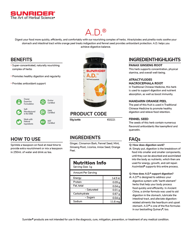 Digest your food more quickly, efficiently, and comfortably with our nourishing complex of herbs. Atractylodes and pinellia roots soothe the stomach and intestinal tract while orange peel treats indigestion and fennel seed provides antioxidant protection.*