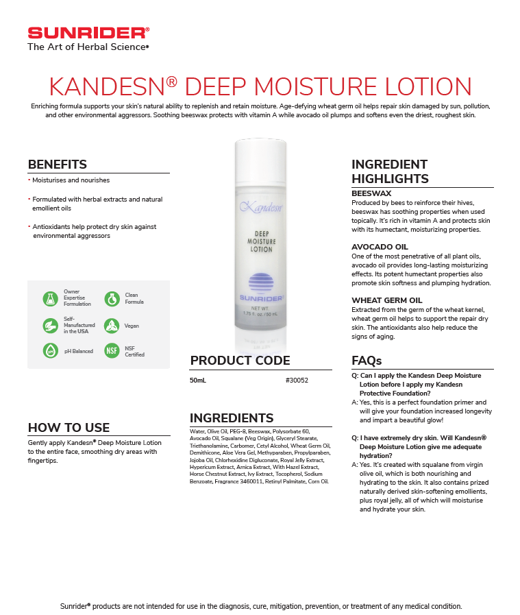 Gently apply Kandesn® Deep Moisture Lotion to the entire face, smoothing dry areas with fingertips.